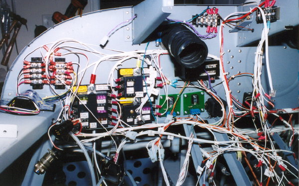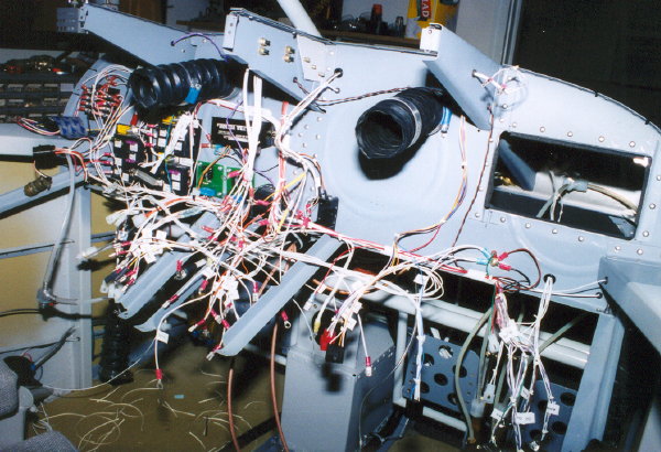 instrument sub panel bulkhead. Most of the wiring in this area is complete at this point.
