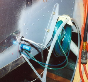 | Here is the plumbing exiting the wing root area forward of the wing spar.